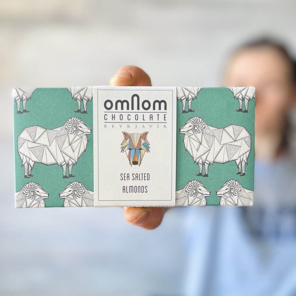 SEA SALTED ALMONDS. Chocolate con leche orgánico con almendras. Azúcar de caña orgánica, leche natural de Islandia y un toque de sal marina.